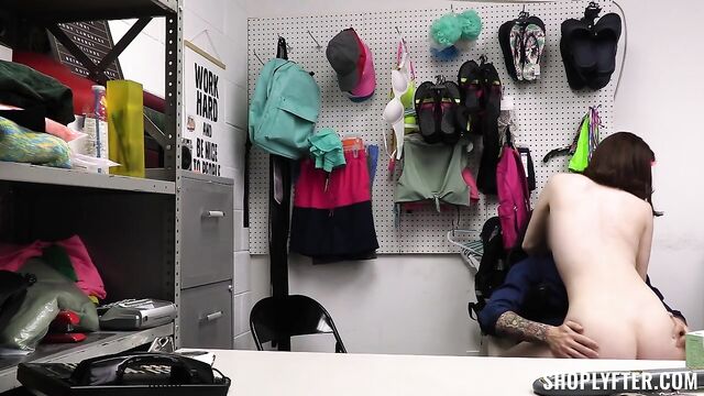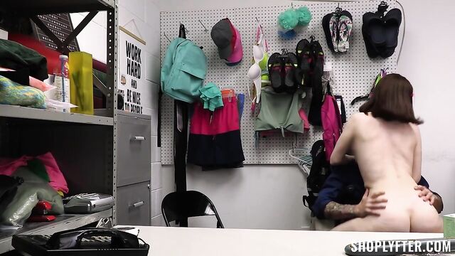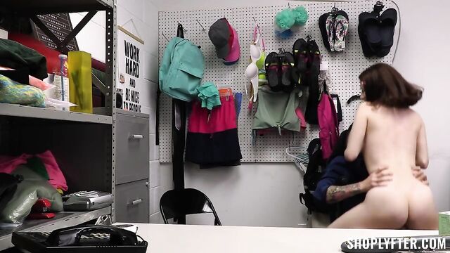 Description:Security officer Billy brings suspected thief Ava to the backroom for questioning. After he leaves her alone to go check the store footage, she takes out an item from under her dress and tries to hide it in a drawer. Little did she know there were cameras inside the backroom as well, so when officer Billy comes back, he confronts her about it. Ava explains that it was just an online trend and promises to never do it again. Unfortunately, Billy must do his job and he can’t just let her go so instead he proposes a deal: if she lets him have his way with her, he’ll let her go without calling the police! Ava sure earns her freedom after that!