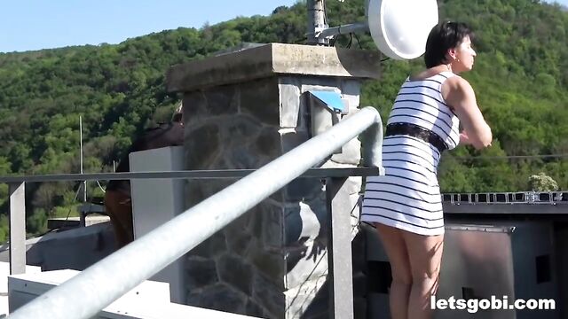L'épatante libertine dans action en extérieur