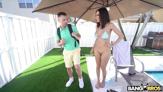 Description:Shay Sights went to relax at the pool. Her plan was to relax all the way! She brought her big dildo. First she oiled her body then the dildo. Then it was time for the fun. Very slowly she slid it in her ass. She moved it back and forth and moaned. Meanwhile Johnny Love came home from school and saw his step mom doing the nasty. He hid and was jerking off while watching her. His hiding place wasn’t too good and she spotted him. She threatened to tell his dad unless Johnny wouldn’t help her analy. She sucked his dick to get him going. Then he put his dick in her ass and they fucked in riding, doggy, spoon and mish until Johnny came in her face.