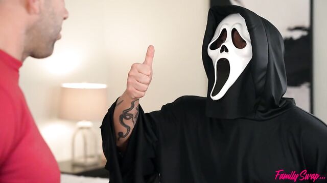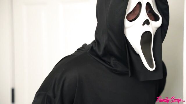 Description: What would happen if four families each contributed one member to create a new family? In this episode of Family Swap, the swap family is having a Halloween party even though there's a murderer on the loose. Chloe Temple and her swap daddy Will Pounder find some space to make out. Chloe mentions being scared and that it's a weird coincidence her swap brother Joshua Lewis is gone every time someone gets offed. Will tells Chloe that swap dad will take care of her, and that's all the incentive she needs to get down on her knees and begin blowing him.While Will is enjoying himself, he sees a masked villain through the window. The stranger indicates he'd like to join in, and Will is DTF. Chloe, too, is into it when she sees the masked man. In fact, Chloe is double teaming the Ds when her swap mom Millie Morgan walks in. Millie is only upset that they didn't invite her to join in!Chloe lets Millie handle Will, blowing his dick as the scary man shoves into Chloe's coochie. Millie takes her turn to ride Will's stiffie in cowgirl before the girls tag out so that Chloe can ride Will's hardon in reverse cowgirl while Millie takes a doggy style dicking down. Returning to their original partners, Chloe enjoys Mr. Scary Mask in doggy while Millie gets on her back, thighs spread for Will. Just after Will delivers a creampie to Millie, the masked man gives Chloe the same. Now that he's satisfied, the mystery villain goes on a murder spree.