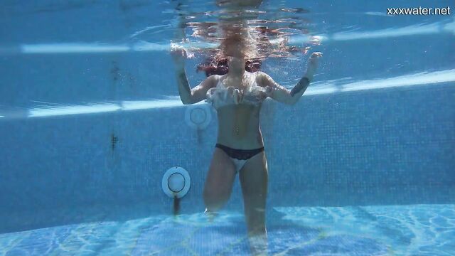 Action de star du porno avec l'époustouflante chaude lapine de Underwater Show