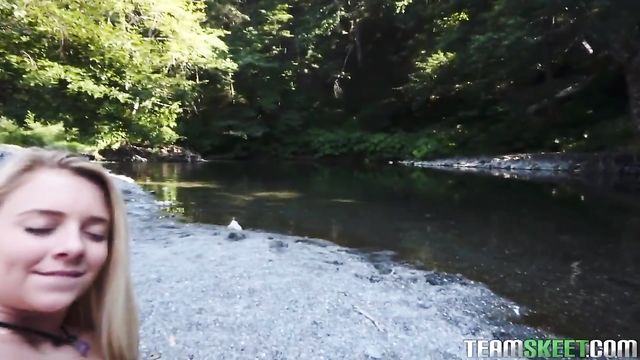 Description: Riley Star and her boyfriend area great time hiking around a beautiful forest when Riley gets a hankering for some big cock. Her boyfriend cannot resist while Riley looks so hot in her cute, nerdy glasses and her little pink bikini top. So, as soon as they get the chance, this size queen turns her focus from tree trunks to her boyfriends big wood. She strips down by the river and takes her boyfriends massive meat out for a slobbery, sensual blowjob. She works her mouth up and down his shaft, and then pops his cock inside her for a tight ride. Finally, he busts a huge nut in her mouth, and Riley is ready to head back to camp. Another lovely day on the trail!