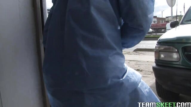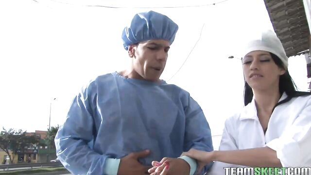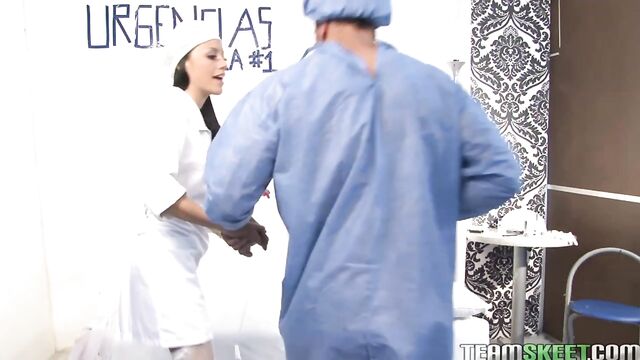 Description:Our boy Carlos hasn’t been feeling well, something with his stomach has been acting up. We took him to the hospital and he met a sexy young nurse Juana who was playing a bunch of guys for their money and not paying attention to making him feel better so he got up and tried to walk home. Juana chased him around the block and got him back inside. Being the dedicated professional she is she made sure to pay him some more attention and get him back on his feet. She checked vitals and then stripped down and showed off her amazing ass. Juana was doing anything she could to make Carlos feel better even sucking and riding his cock. Bouncing up and down and getting her pretty face drenched with sticky cum!