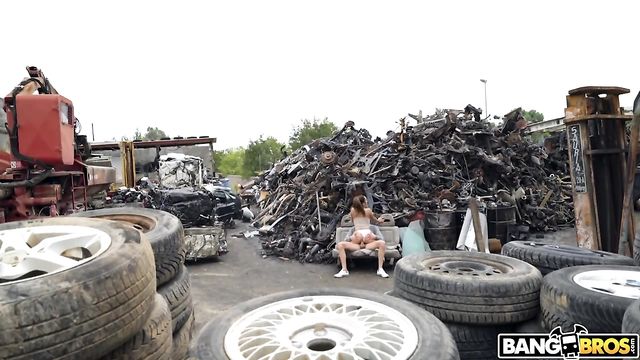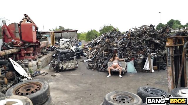 Description:Potro and Ginebra can't keep their hands off of each other. They're so passionate and horny that they can't even wait until they get home. As they're walking, they come across an abandoned junkyard that seems to be completely empty. They sneak in and waste no time. They get naked and she gives him a sloppy blowjob that he can't get enough of. They find somewhere to sit and she jumps on that dick ass first. He fucks her in her tight asshole until it stretches the size of a car tire. They fuck in multiple positions and he gives her a huge load that she swallows right up. They get caught by a worker but luckily, they finished exactly what they needed to do.