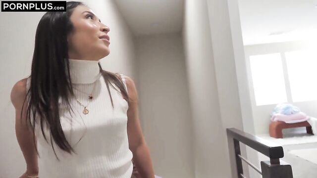 Description:Realtor almost loses a client when she stumbles across his fuck doll and embarrasses him. She smooths things over by asking to watch him use it. She see’s his big dick and wants it for herself.
