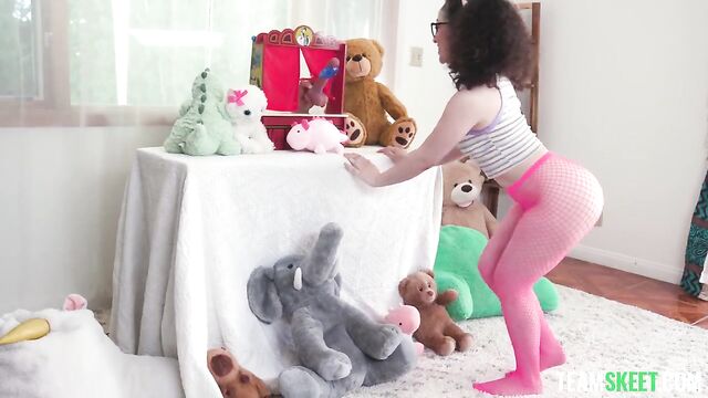 Description: The gorgeous Pixie Smalls is thrilled! She just got a note saying there’ll be a puppet show downstairs at her own house and she can’t wait. After jumping on the bed in delight, the curly-haired petite babe rushes downstairs to find a small stage arranged in the living room. Shocked, she sits on the floor to watch this impromptu childish play at her place. It’s about a flying pilot who’s afraid of flying. But… the pilot puppet is in fact a penis with a costume! The pilot asks the only member of the audience to give him some love and cheer him up, so she kisses the cock. Soon, the show's over and Danny reveals himself! He planned this all along to surprise the beautiful Pixie. Now, he wants a little token of gratitude for his show, so Pixie gets down to business and gives Danny’s dick as much love as she showed to the pilot puppet. She is so delighted about the play that she wouldn’t mind her puppetmaster stuffing her up with his massive meat.