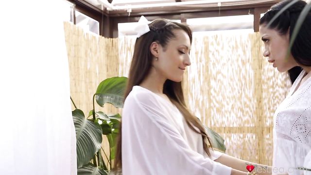 Description:Stunning lesbians Julia De Lucia and Mishel Dark are both clad in white and horny. Mishel comes close to Julia and kisses her, then slides her fingers down the front of Julia's panties. Teasing Julia's clit, Mishel slips a finger into her pussy and the taller babe moans in delight. Turning Julia around, Mishel worships her big booty, then fingers her until she cums. Julia then sits on Mishel's face and plays with her tits as her lover eats her out. The babes pleasure each other in 69, then Julia worships Mishel's ass and gives her a sloppy rimjob. Once they've both cum, Mishel sits on Julia's face and orgasms once more!