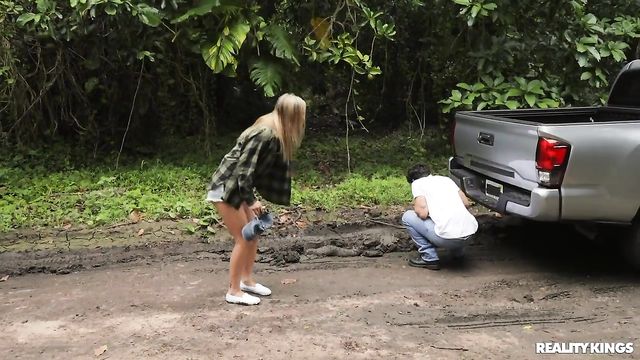 Description:Gentleman Lukas King stops to help when he sees Ana Rose got her truck stuck in some mud, and he's not one to give up when his clothes get a little dirty. The cute blonde is so grateful when he tows her out, she pulls off his muddy jeans and sucks his cock! Lukas puts her up on her tailgate to lick her clit. After he pounds her pussy in missionary, Ana rides him in the bed of her pickup, then sucks out his big load!