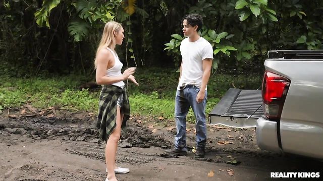 Description: Gentleman Lukas King stops to help when he sees Ana Rose got her truck stuck in some mud, and he's not one to give up when his clothes get a little dirty. The cute blonde is so grateful when he tows her out, she pulls off his muddy jeans and sucks his cock! Lukas puts her up on her tailgate to lick her clit. After he pounds her pussy in missionary, Ana rides him in the bed of her pickup, then sucks out his big load!