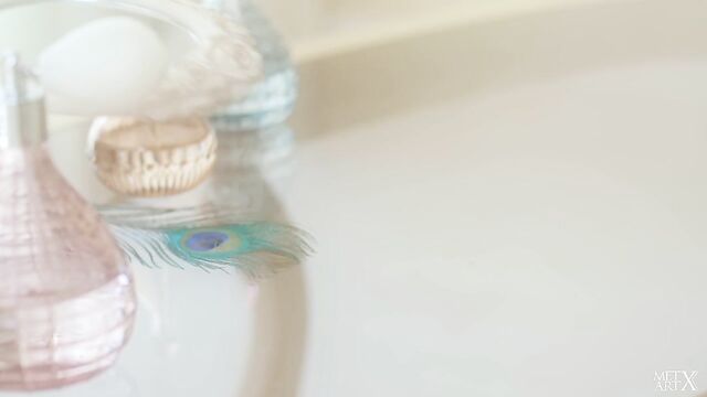 Description:Sensual sweetheart Maria Rubio wakes and sips morning tea in her boudoir. Dressed in a pink nightdress that complements her ivory pale skin and her long blonde hair, the Russian princess is a picture of ethereal beauty. She sprays an exotic fragrance on her neck, and slips the nightdress down off one of her slender shoulders to expose a single breast, which she gazes at in a hand-held mirror. She pulls back her panties and studies her shaved pussy in the mirror too, and continues to do so once she’s naked and finger strumming her slit and clit. It’s the start of a solo sex session that culminates in an intense orgasm.