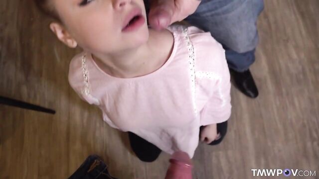 Description:Valter is bored alone in his apartment today. He hears how his neighbors talking outside his door. He decides to meet them and invites them to visit him to have some fun together. The guy and his girlfriend Calibri agree to come in. They meet their new neighbor Valter and notice that he is exactly the kind of man they like — handsome and looking to fuck. When Valter shows them some neighborly love, Calibri decides to give him a lasting first impression. She gets down on her knees and opens her mouth wide to suck his massive cock. She blows one dude while jerks off the other and then they switch a few times before she lets them dive into her wet pussy. They both take turns fucking her with vigor in every direction and every way possible. Calibri loses in a sea of ecstasy as both of her dudes take turns filling up her mouth, pussy and ass with their dicks until they both finally cover her face with a hot cum!